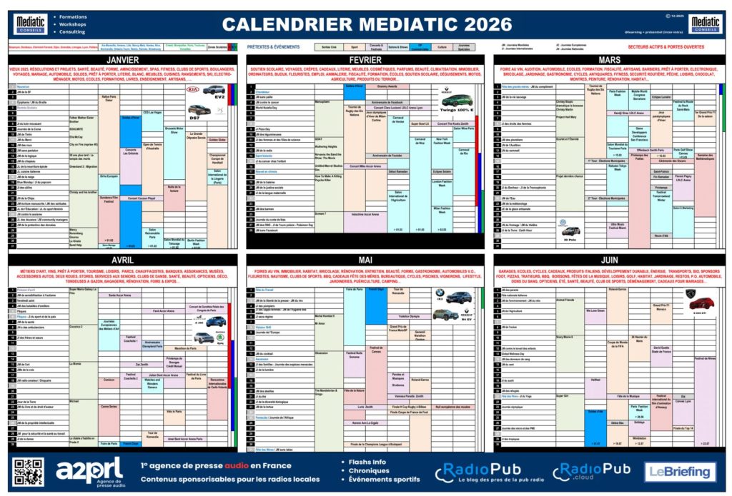 Calendrier éditorial, commercial et promotionnel utile pour la cohésion antenne, commercial et digital.